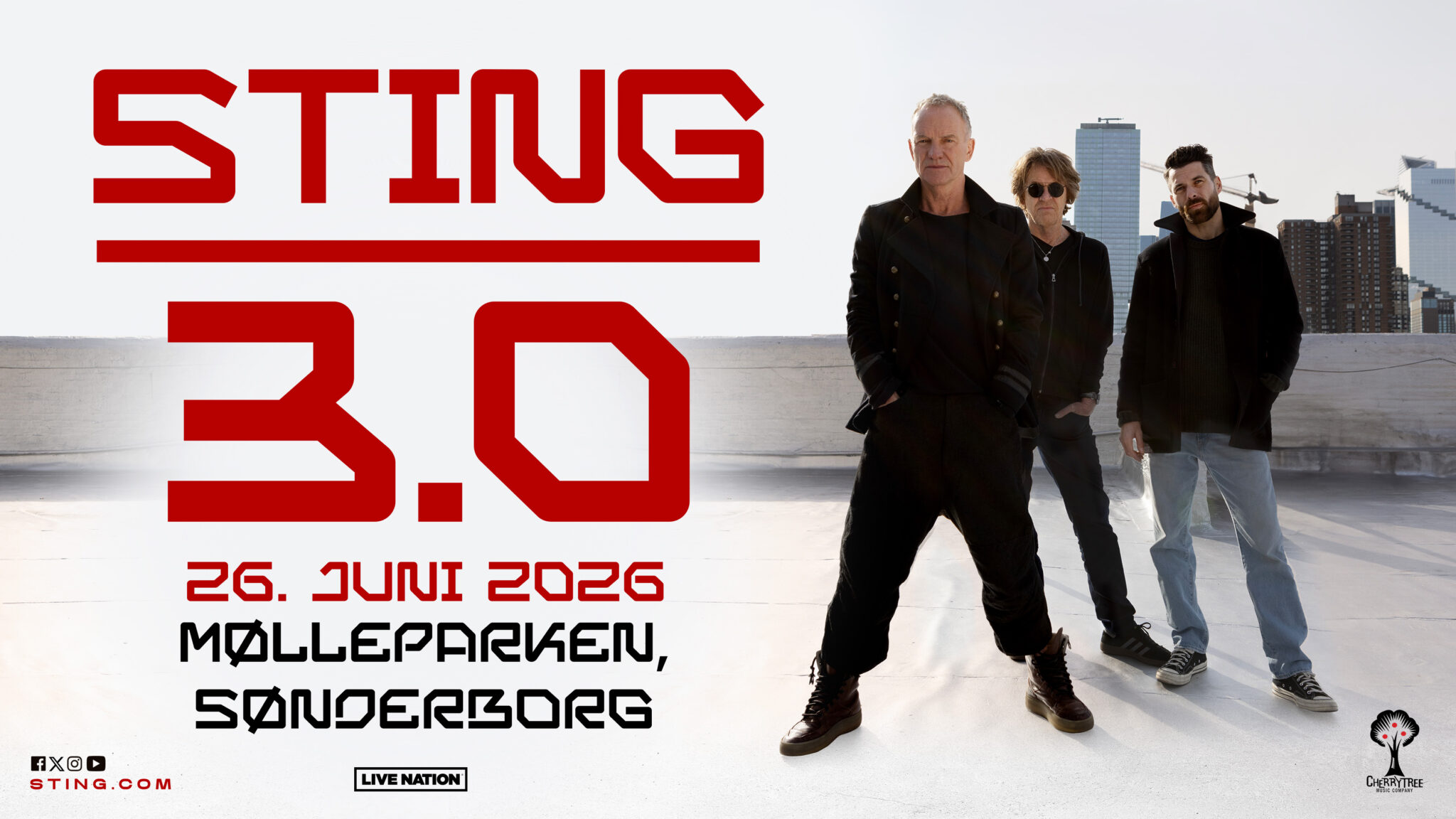 Den 17-dobbelte Grammy-vindende kunstner STING tager på verdensomspændende turné ”STING 3.0” (præsenteret af Cherrytree Music Company og Live Nation) med den virtuose guitarist Dominic Miller samt den dynamiske trommeslager Chris Maas. Fans får mulighed for at opleve STING optræde med både de mest elektrificerende hits og sjældne numre fra hans tidløse diskografi. Koncerten er den eneste i Danmark i 2026.